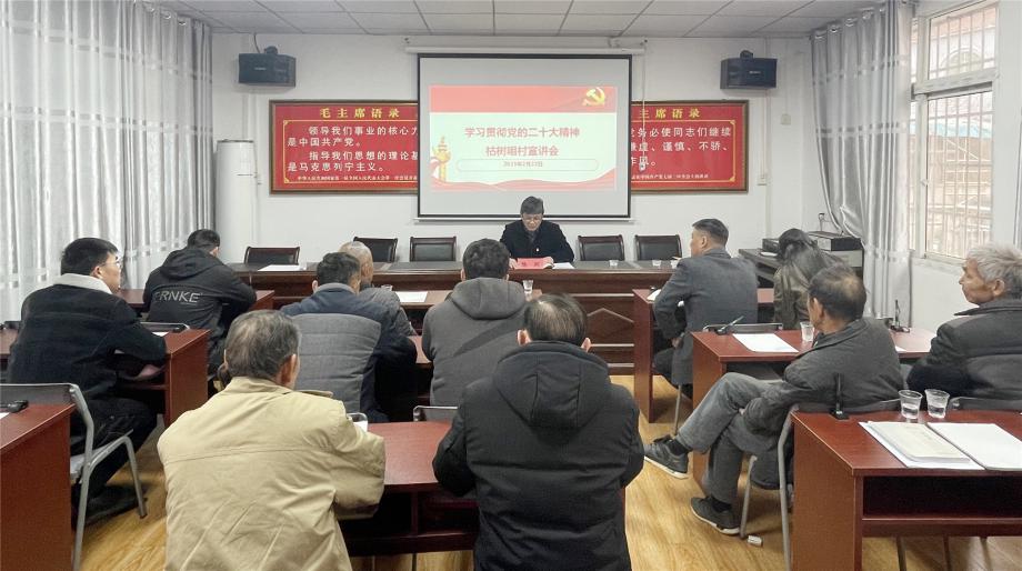 2月22日,磁湖高新公司黨委委員、總會計師陸剛赴汪仁鎮(zhèn)枯樹咀村宣講黨的二十大精神,鼓勵該村黨員干部進(jìn)一步提升鄉(xiāng)村治理能力和水平,奮力譜寫鄉(xiāng)村治理新篇章。