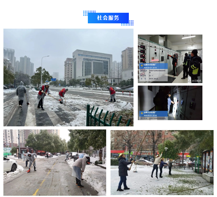 21日夜間,山南、汪仁污水處理廠全員到崗,連夜開展污水廠配電房線路排查和雙回路導(dǎo)閘試驗,確保正常運營,保障開發(fā)區(qū)工業(yè)企業(yè)生產(chǎn)廢水和居民生活污水處理達標(biāo)排放,避免污水外溢造成環(huán)境污染。22日上午,公司領(lǐng)導(dǎo)帶隊赴包保社區(qū),開展道路除雪和臨街樹木除冰,消除斷枝墜落隱患,確保社區(qū)道路通暢,群眾安全出行;在包保路段,公司志愿者清理路面積雪和道路排水溝渠,為公交站臺清出安全通道,守護居民“回家路”。