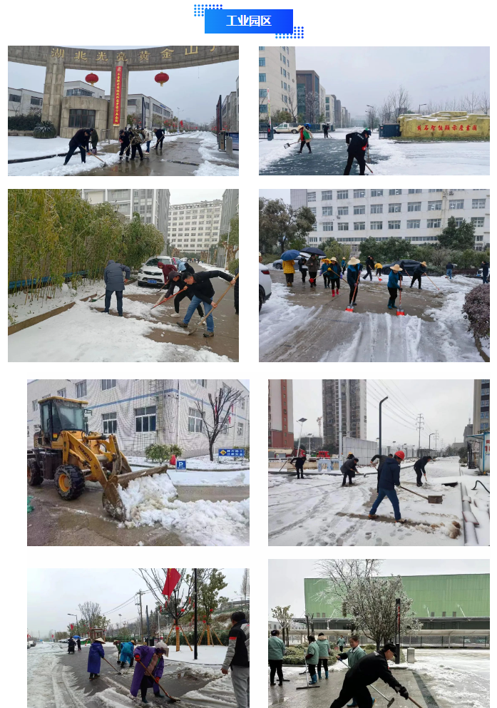 在各工業(yè)園區(qū),積極除雪保暢,排除安全隱患以保障企業(yè)正常生產(chǎn)經(jīng)營。