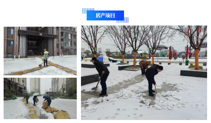 公司準(zhǔn)備了充足的鐵鍬、雪推、草墊、防滑墊、工業(yè)鹽、融雪劑等應(yīng)急物資,均投入使用。