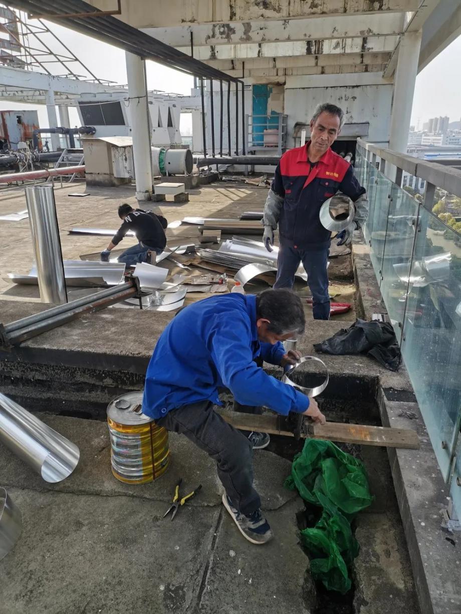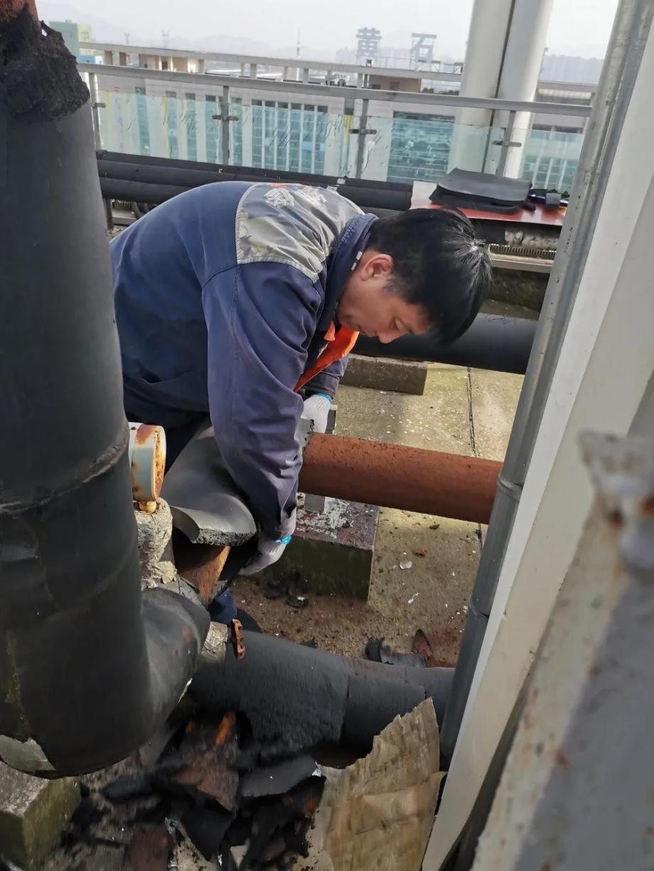 為此,高新物業(yè)公司認真貫徹落實《綠色高效制冷行動方案》,及時維修、更換該樓中央空調(diào)循環(huán)水管保溫棉外露面,并加裝鋁制金屬保護殼,在節(jié)約能耗的同時,還能有效避免凝水滲漏。