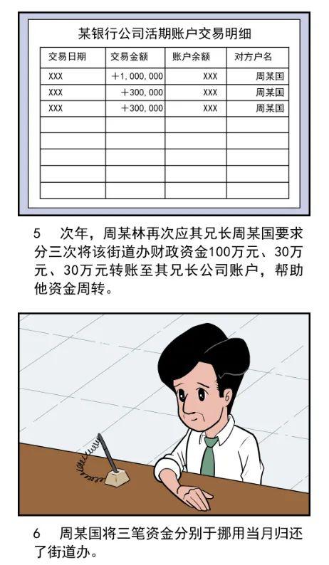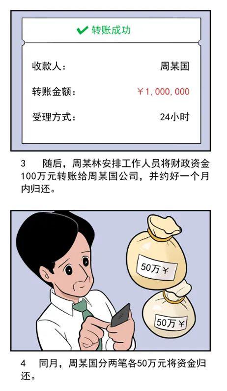2015年5月8日,時(shí)任Y市某街道財(cái)政所所長(zhǎng)周某林為幫助解決其兄長(zhǎng)某公司法定代表人周某國(guó)經(jīng)營(yíng)周轉(zhuǎn)困難,周某林向街道辦事處主任口頭請(qǐng)示后,以為企業(yè)墊交稅款為名,安排工作人員將該街道辦事處財(cái)政資金一百萬(wàn)元轉(zhuǎn)賬至其兄長(zhǎng)公司賬戶,并約定一月內(nèi)歸還。同月15日、22日,周某國(guó)通過(guò)公司賬戶和其個(gè)人賬戶分兩筆各五十萬(wàn)元將資金歸還。