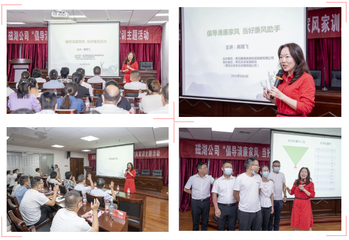 9月2日,磁湖高新公司組織開展“倡導(dǎo)清廉家風(fēng),當(dāng)好廉風(fēng)助手”家風(fēng)家訓(xùn)主題活動(dòng),推動(dòng)廉潔文化進(jìn)家庭,引導(dǎo)干部職工家屬當(dāng)好“廉內(nèi)助”,進(jìn)一步筑牢反腐倡廉家庭防線。黨委委員、紀(jì)委書記石華參加活動(dòng)并講話,黨委辦公室主任蔡華中主持活動(dòng),公司中層以上管理人員及家屬參加活動(dòng)。